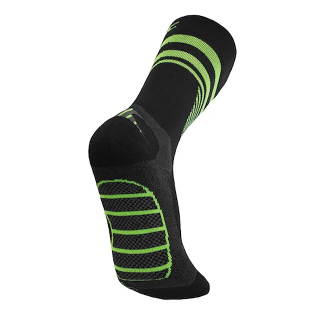 - Compression graduée mollet-pied : tonifie muscles et tendons pour limiter les vibrations et la fatigue, et améliorer le retour veineux