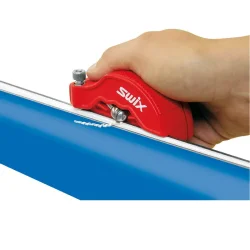 Pour éviter tout risque d'accident il faut travailler le top sheet ( la déco du ski) vers soi, et tenir fermement l'équerre sans trop appuyer.