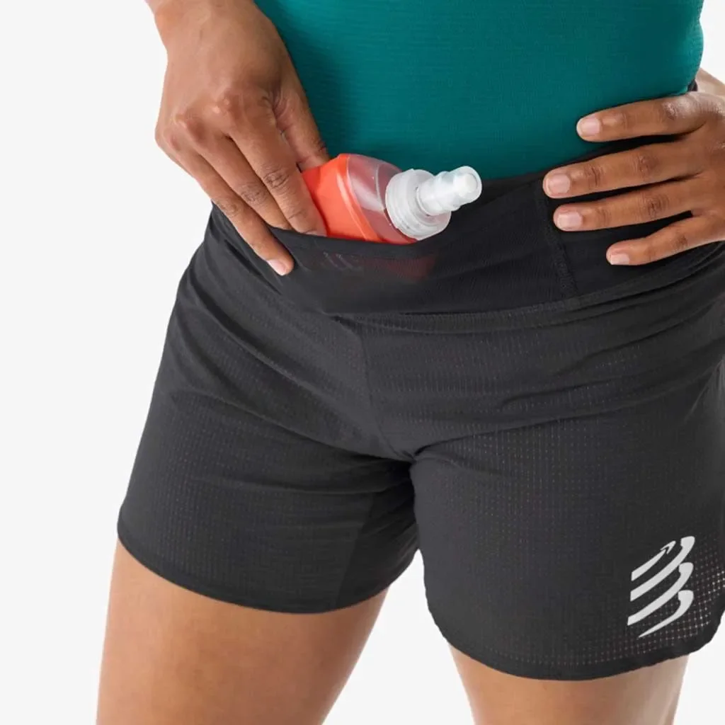 Short de trail léger pour femme Compressport Trail Racing, avec slip intégré et ceinture de stockage, idéal pour relever votre prochain défi running en montagne. Conçu pour offrir confort et praticité pendant vos courses