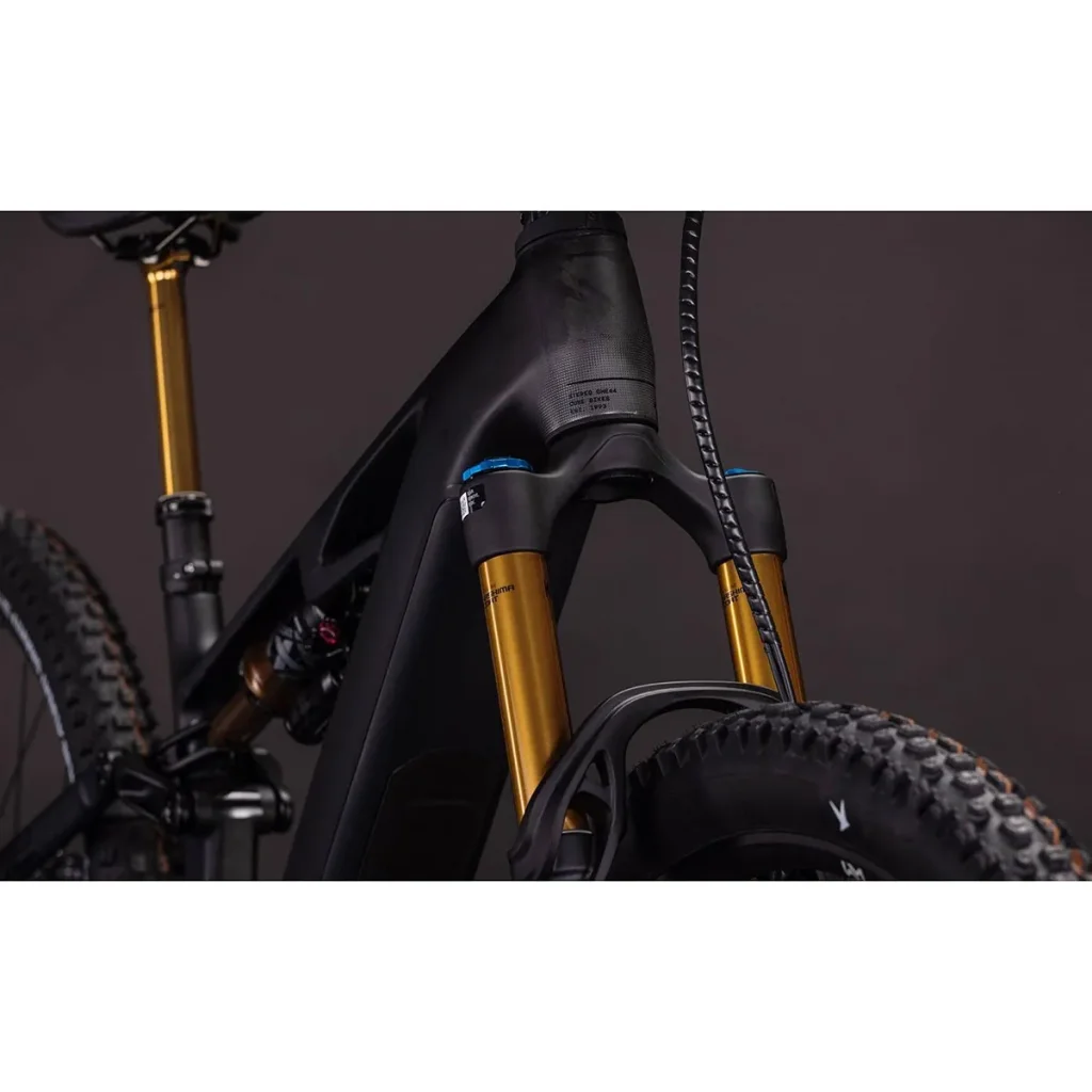 Côté comportement, ses 150 mm de débattement avant et 140 mm arrière associés à une suspension FOX Factory permettent d’absorber les terrains techniques tout en conservant précision et dynamisme. Sa transmission électronique Shimano XT Di2 et ses freins hydrauliques puissants assurent un contrôle optimal quelles que soient les conditions.