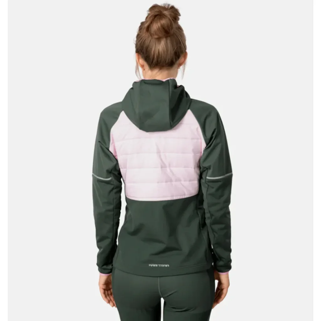 La Nia Jacket présente un design matelassé sur l’avant et l’arrière pour une isolation thermique ciblée, avec des panneaux latéraux/stretch pour favoriser la liberté de mouvement. Elle intègre une capuche doublée au col haut, des poches sécurisées, et des détails réfléchissants pour plus de visibilité. Le tissu principal est en polyester (et zones contrastées en polyester/élasthanne), avec une doublure intérieure brossée pour confort et douceur.