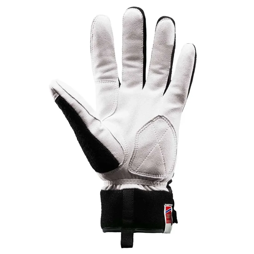 Le dos de la main est composé d'un textile coupe-vent à trois couches, offrant une protection efficace contre le vent tout en maintenant une excellente respirabilité, ce qui permet de réguler la température des mains pendant l'effort. La paume est réalisée en cuir synthétique Clarino®, reconnu pour sa durabilité et sa facilité d'entretien, assurant une prise en main précise des bâtons de ski. La doublure intérieure est conçue pour fournir une chaleur supplémentaire, idéale pour les conditions froides. Les poignets sont dotés de manchettes en tricot de laine/polyamide, procurant un ajustement confortable et une isolation supplémentaire.