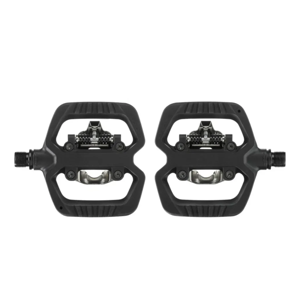 - Type : pédales gravel hybrides (clipless + plateforme)