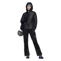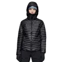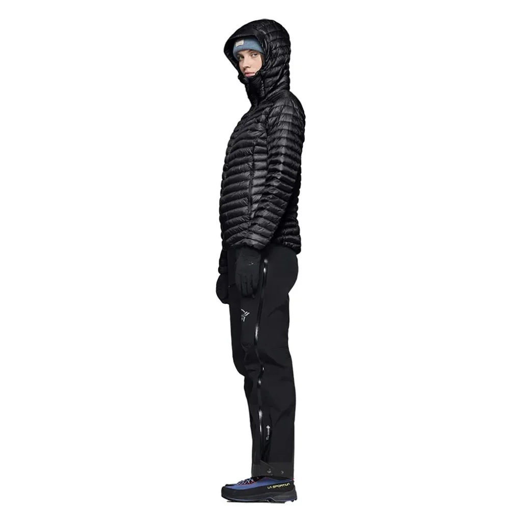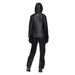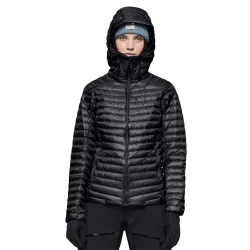 Cette doudoune haut de gamme est pensée pour être portée comme couche extérieure ou intermédiaire. Elle combine un tissu externe en nylon recyclé 10D (≈ 28 g/m²) « aeroDownproof » avec une isolation en duvet 90/10 certifié RDS 800+ fill, offrant un excellent rapport chaleur/poids. Elle dispose d’une coupe technique adaptée aux femmes, d’une capuche protectrice, d’un col montant et d’un ourlet arrière allongé pour un meilleur maintien sur la pente.