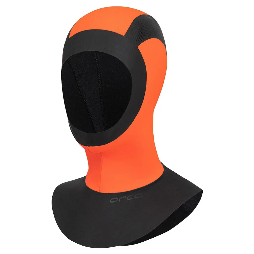 Cette cagoule de chez Orca est très confortable et bien ajustée. Sa couleur orange fluo permet de toujours rester bien visible même de loin. Sa doublure thermique permet de garder sa tête bien au chaud. La protection descend jusqu'au coup, ce qui minimise les surfaces en contacte avec l'eau froide.