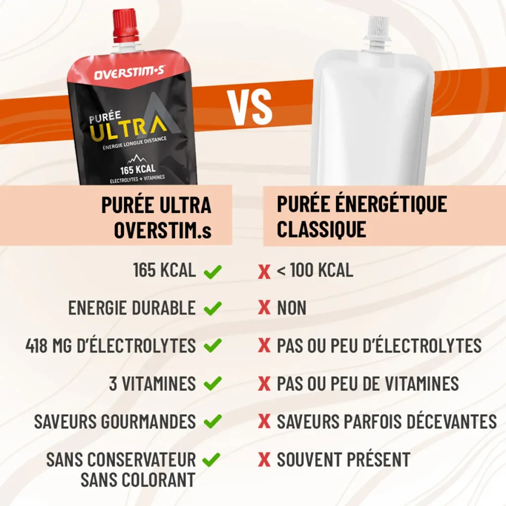 La Overstim.s Purée Ultra Abricot est une boisson énergétique de sport qui offre une énergie progressive et une excellente digestibilité, idéale pour le trail, le running ou le cyclisme longue distance.