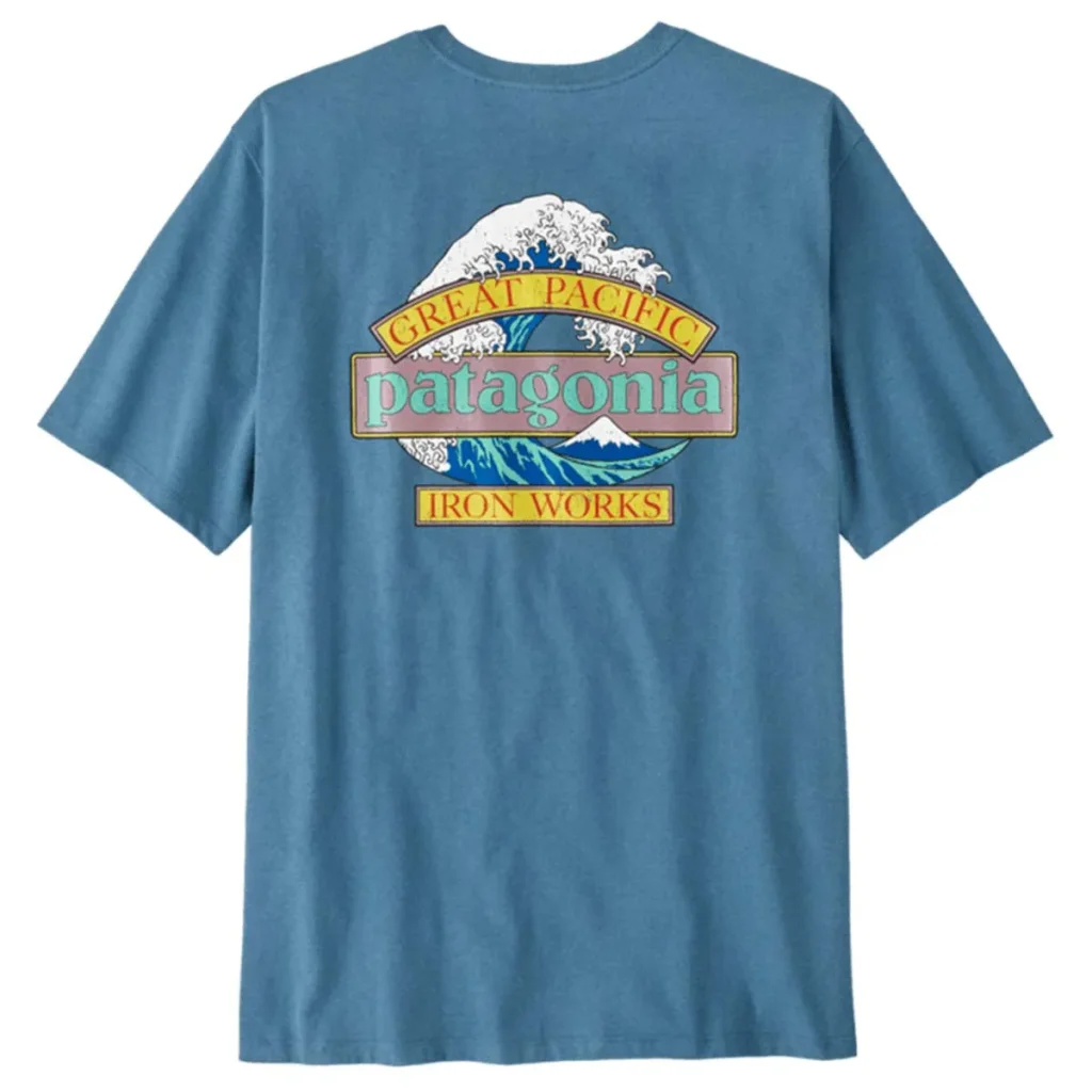 Le PATAGONIA Great Waves Responsibili-Tee shore blue est un haut à manches courtes polyvalent, qui offre l’alliance parfaite entre un design artistique iconique et un engagement écologique.