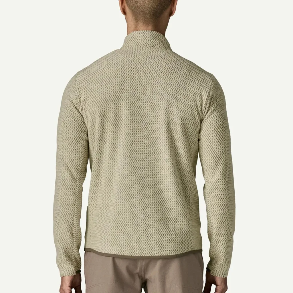 La gamme R1 Air redéfinit la polaire active grâce à son tissage innovant en zigzag. En coloris Pelican (un beige chiné naturel et technique), cette veste offre un look épuré et moderne. Sa structure en fibres creuses permet d'emprisonner la chaleur tout en laissant circuler l'air de manière exceptionnelle, évitant ainsi la surchauffe lors des montées sèches. Fidèle aux engagements de Patagonia, elle est fabriquée à partir de polyester recyclé et certifiée Fair Trade Certified™, alliant performance de pointe et respect de la planète.