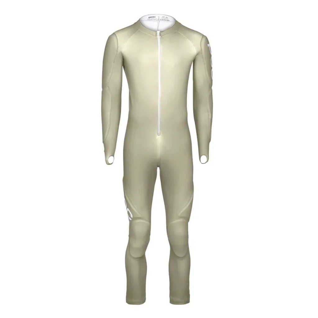 La POC Skin GS en coloris Natrolite Beige est une combinaison de ski de compétition approuvée par la FIS, conçue pour offrir aux skieurs une performance optimale lors des épreuves de slalom géant.