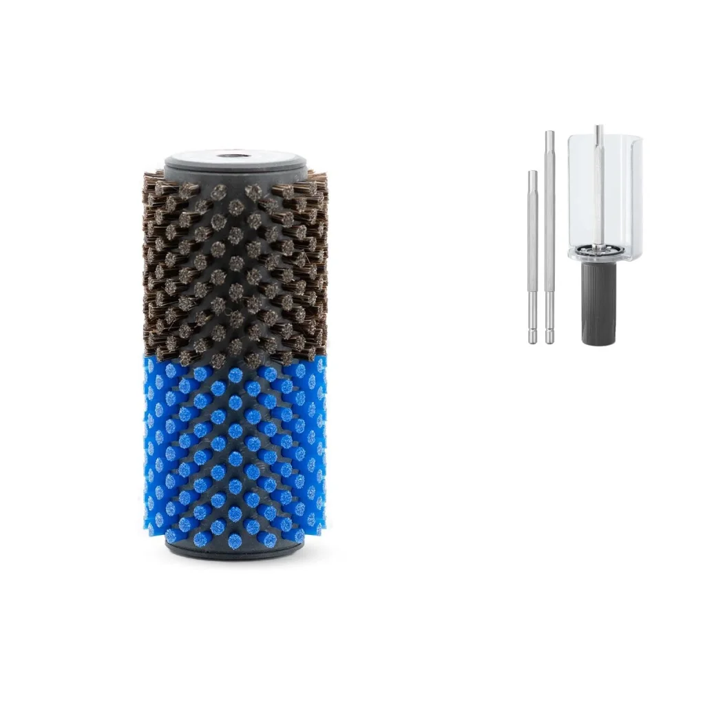 Cette poignée astucieuse vous permet d'utiliser vos différentes brosses rotatives en 140 et 100mm. Axe interchangeable sans outils. Vendu sans brosses