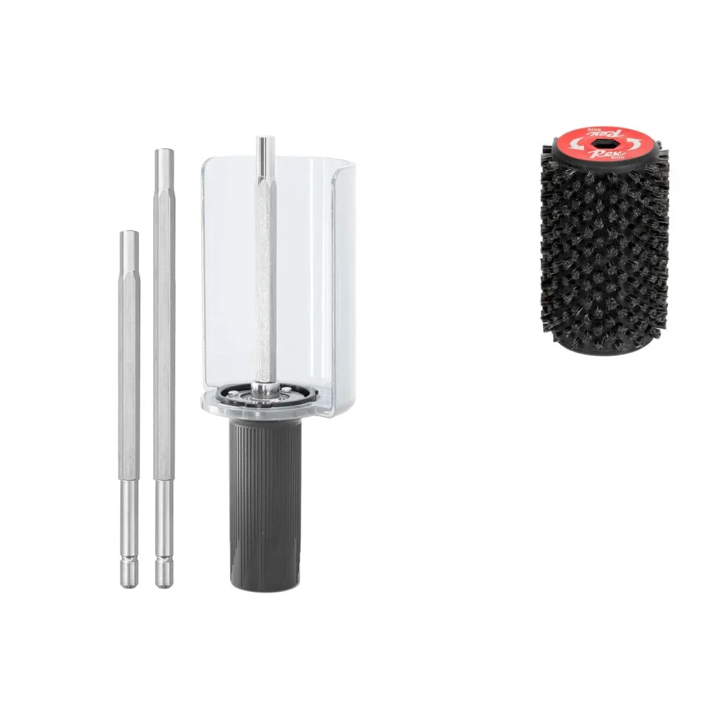 Cette poignée astucieuse vous permet d'utiliser vos différentes brosses rotatives en 140 et 100mm. Axe interchangeable sans outils. Vendu sans brosses