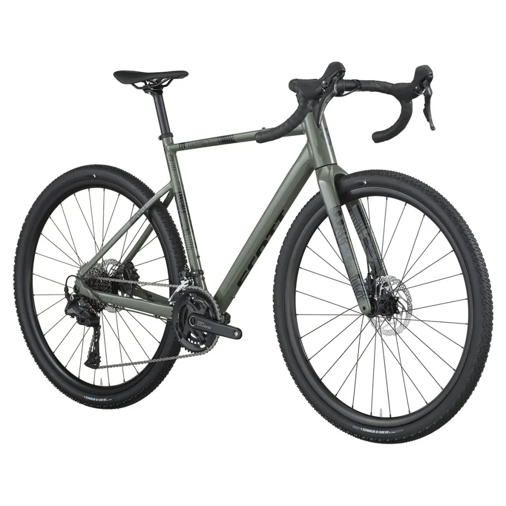 - Cadre : Aluminium 6061 double-butted, géométrie gravel Scott, câblerie interne