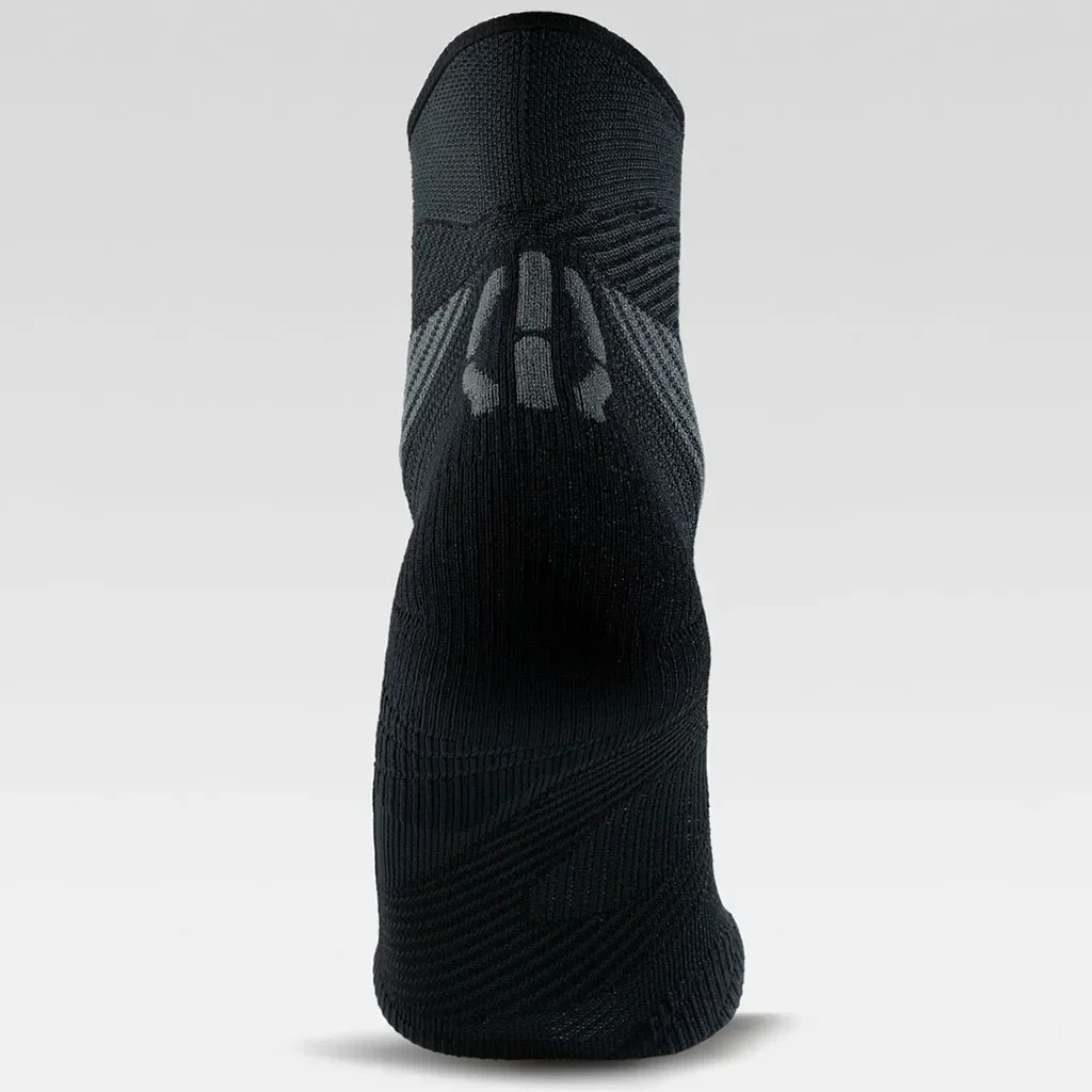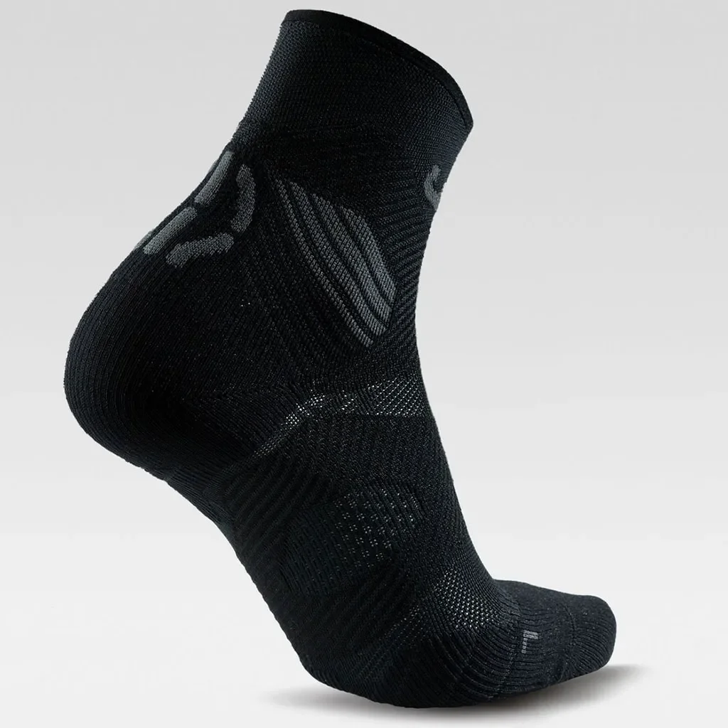 Les chaussettes UYN Run Trail One en noir et gris sont conçues pour les coureurs de trail recherchant performance, confort et protection sur les sentiers.