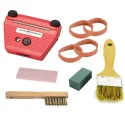 Pack comprenant : 1 Affuteur Champs et Plat multiangle + Une pierre Oxyde d'alumin + Une Gomme Grains très fin + 1 Brosse à carder + 2 paires d'attaches stop ski + 1 pinceau queue de Morue