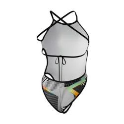 Ce maillot de bain 1 pièce pour femme offre une coupe athlétique avec des bretelles fines à nouer dans le dos, assurant un ajustement personnalisé et une liberté de mouvement optimale. Entièrement doublé, il garantit une opacité totale et un confort accru. Sa conception en tissu Invincible 100 % polyester assure une résistance exceptionnelle au chlore et aux UV, prolongeant ainsi sa durée de vie.